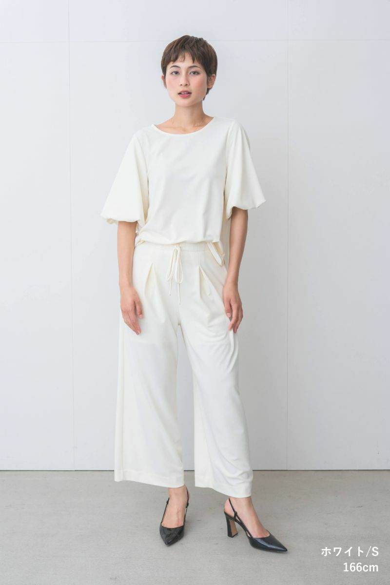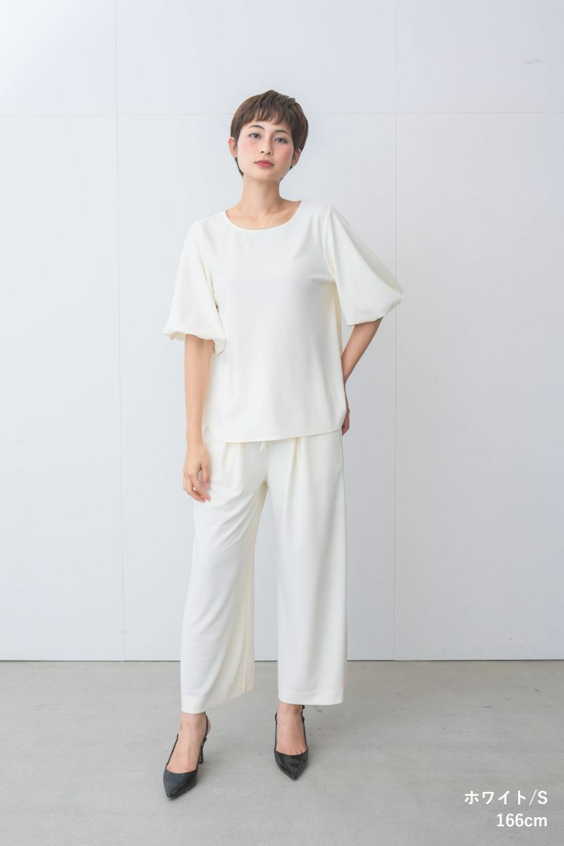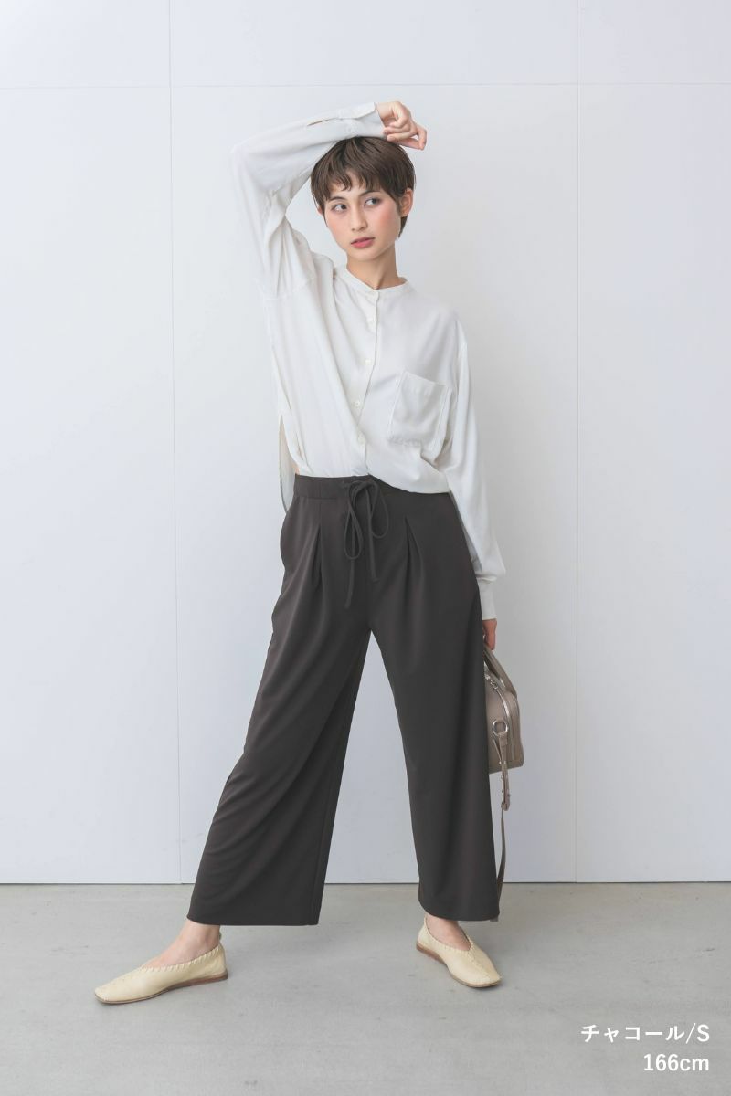 同じ生地を使用したシーンレスリッチパンツとセットアップとしても使えるデザインで、コーディネートの迷いも解消。