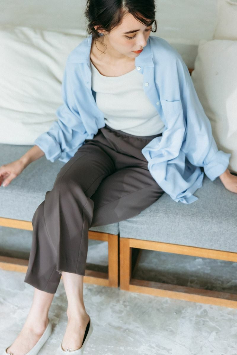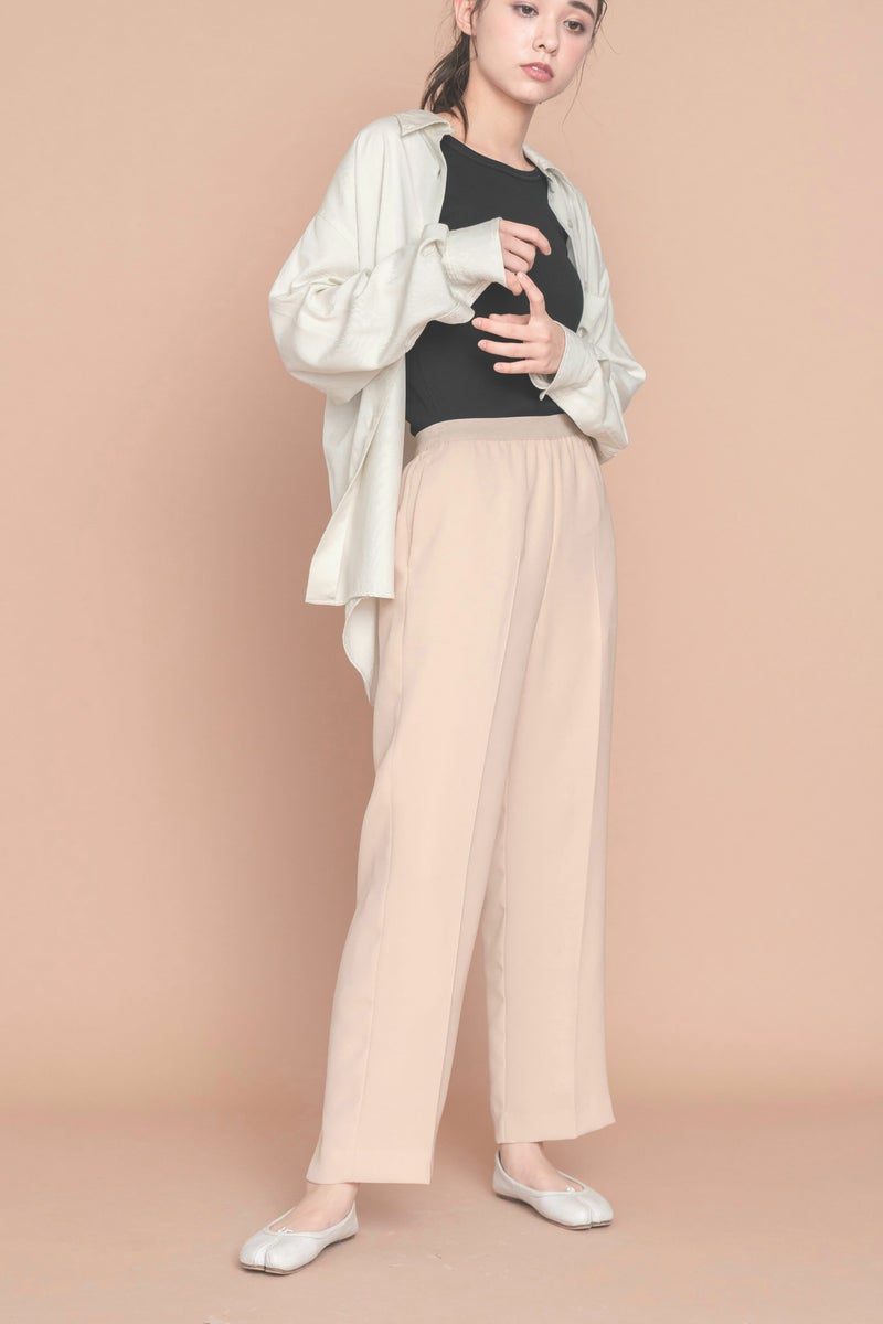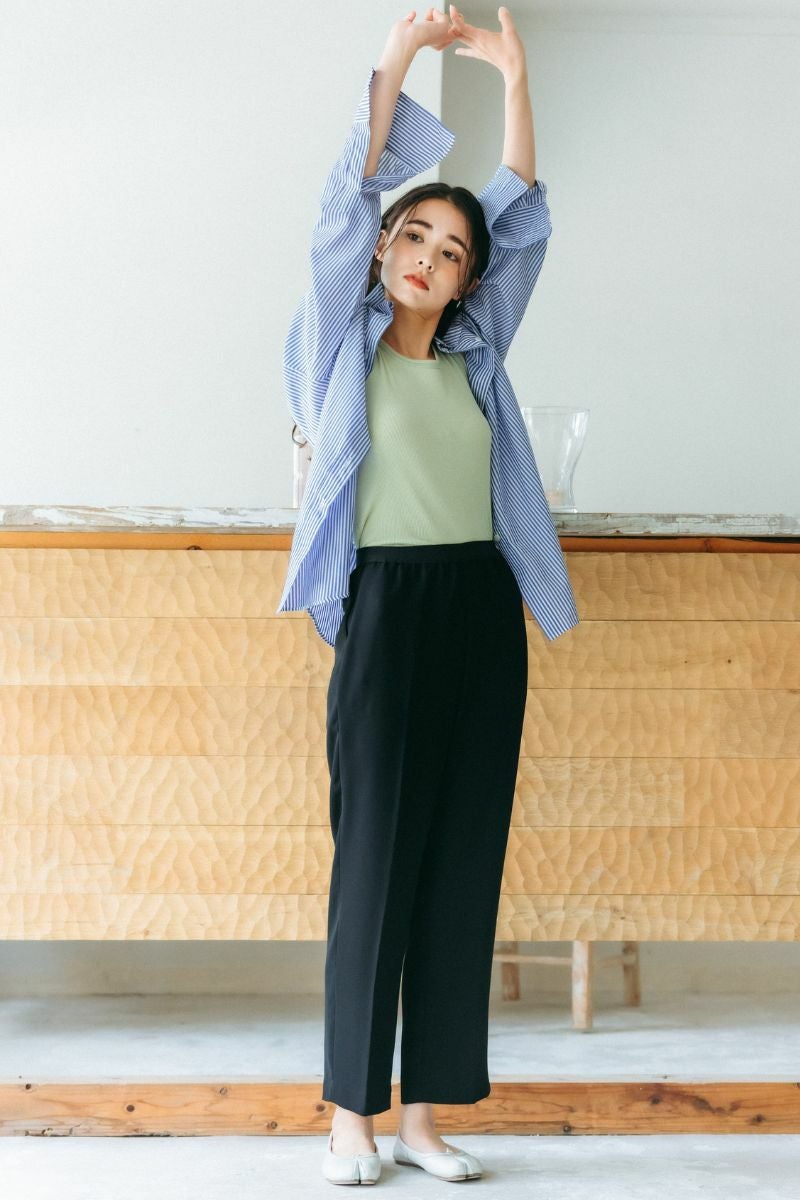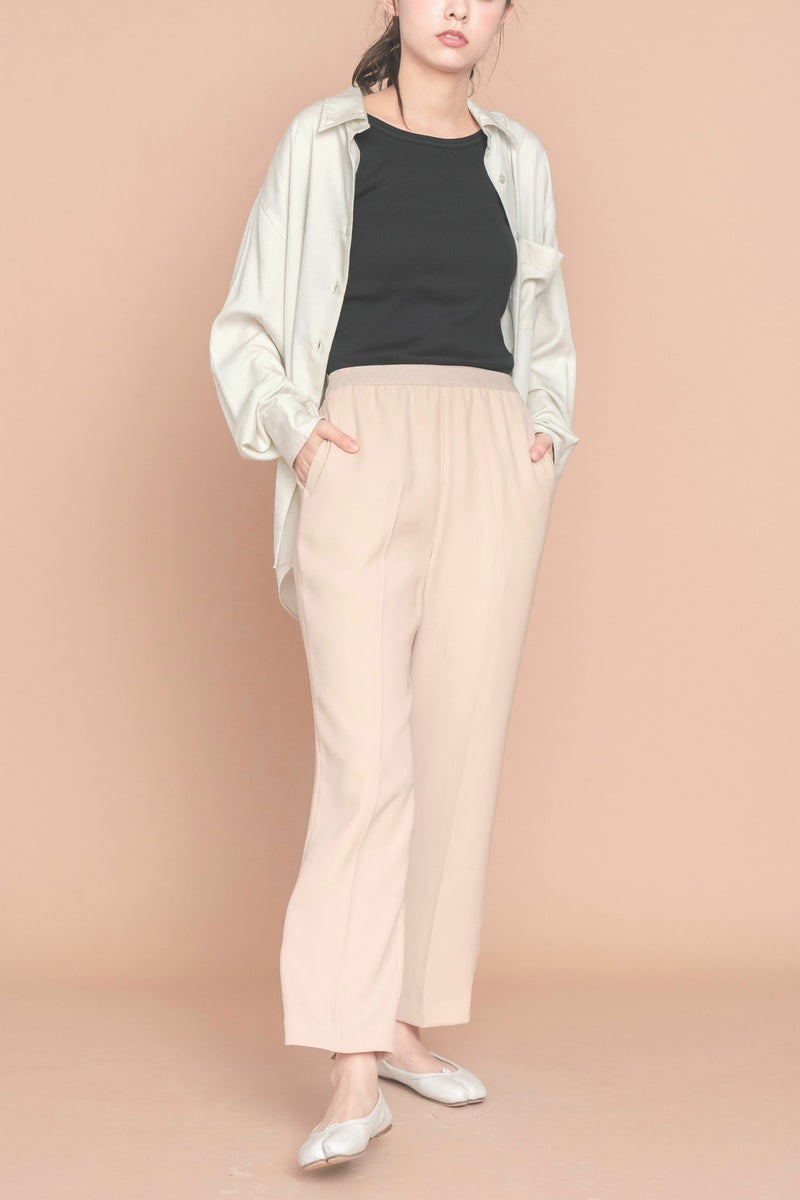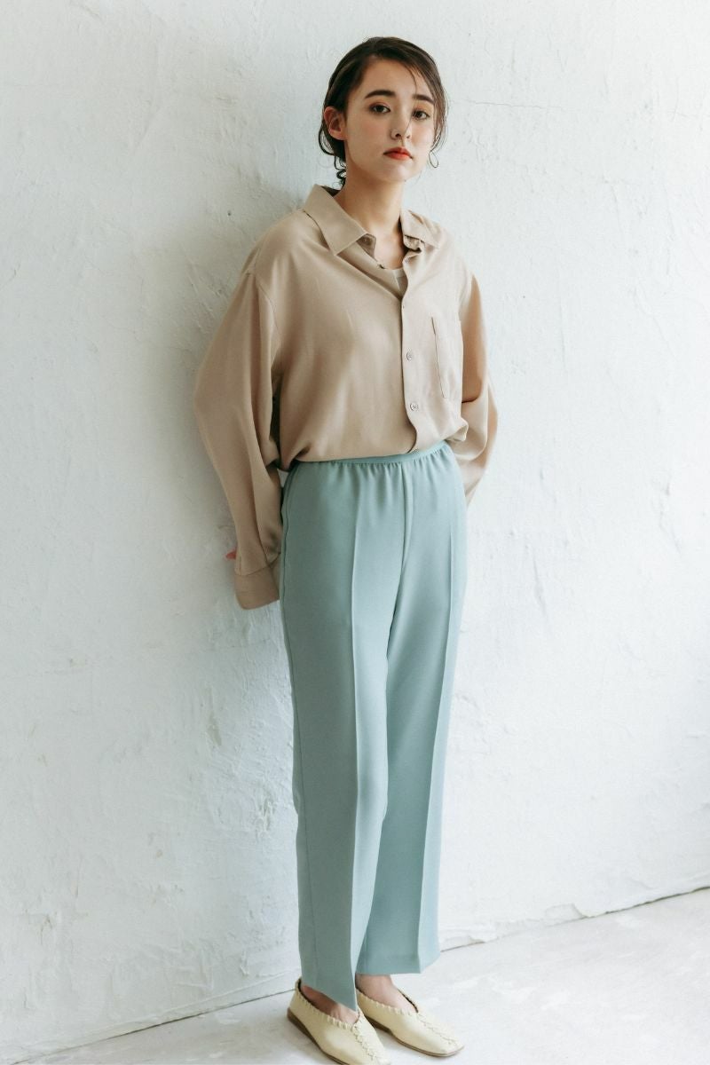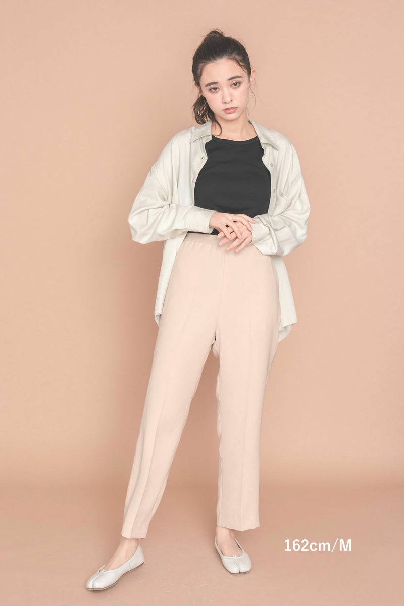 ウエストゴムで楽ちんなのにセンタープレスで綺麗目に着れて、良いとこ取りなパンツです。骨格ウェーブなのでハイウエストで履けるプレミアムカラースラックスのほうがしっくりきますが、リラックスしたい日にはこちらを着用しています。ミントも追加で購入しました。一気にコーデが爽やかになりお気に入りです。
