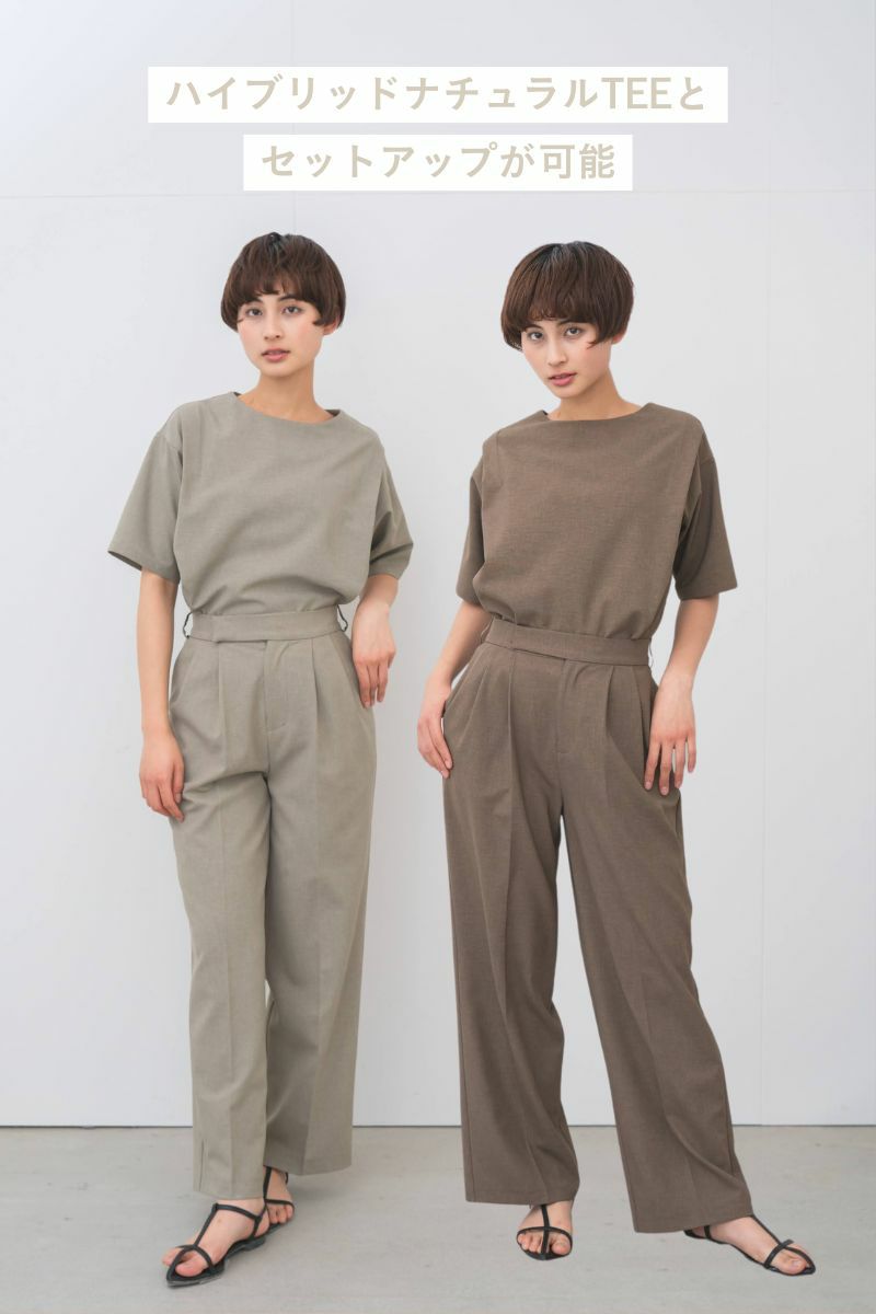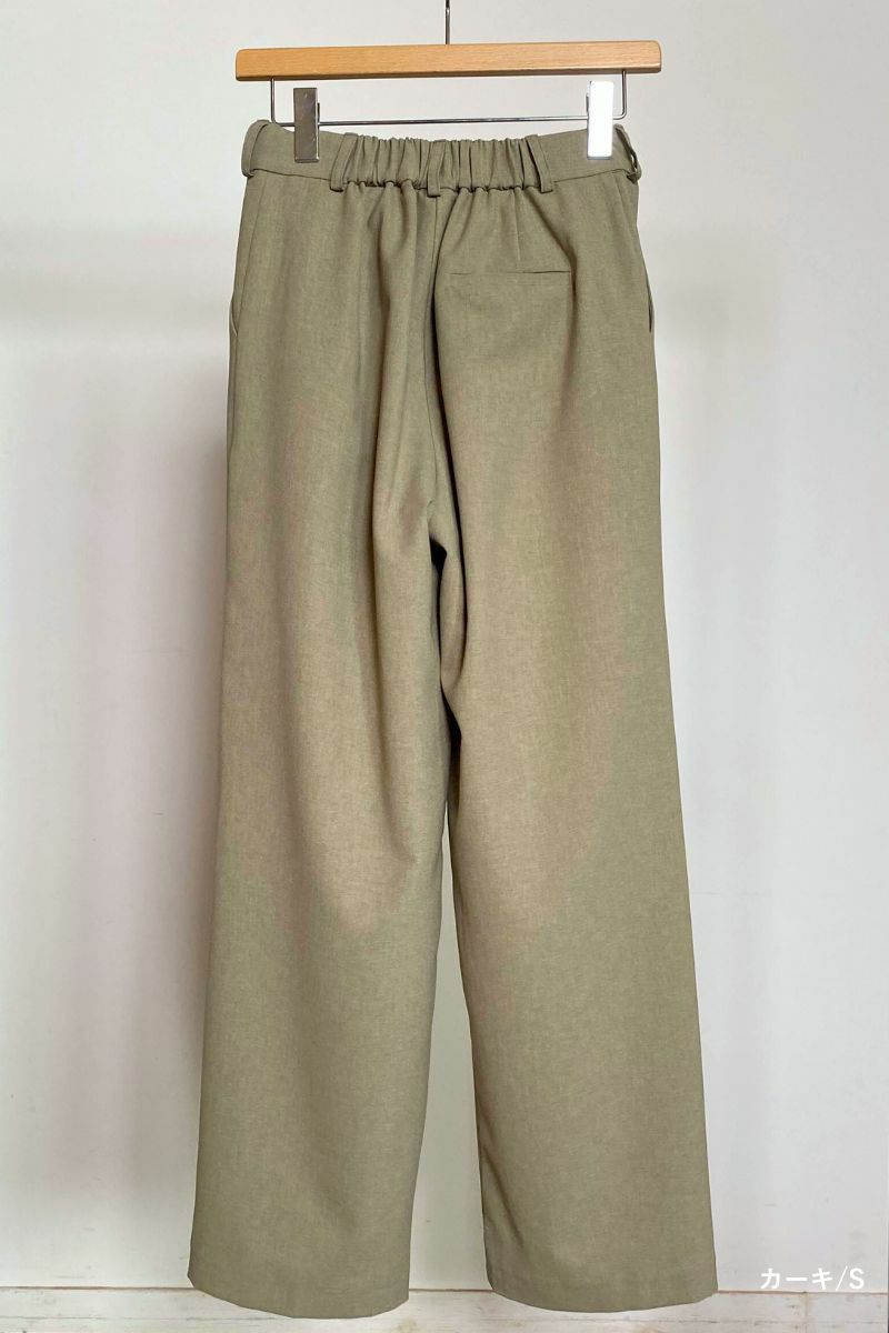 足のラインを拾わないややワイドなシルエットですが、腰回りにはタックを入れすっきりとした印象に。