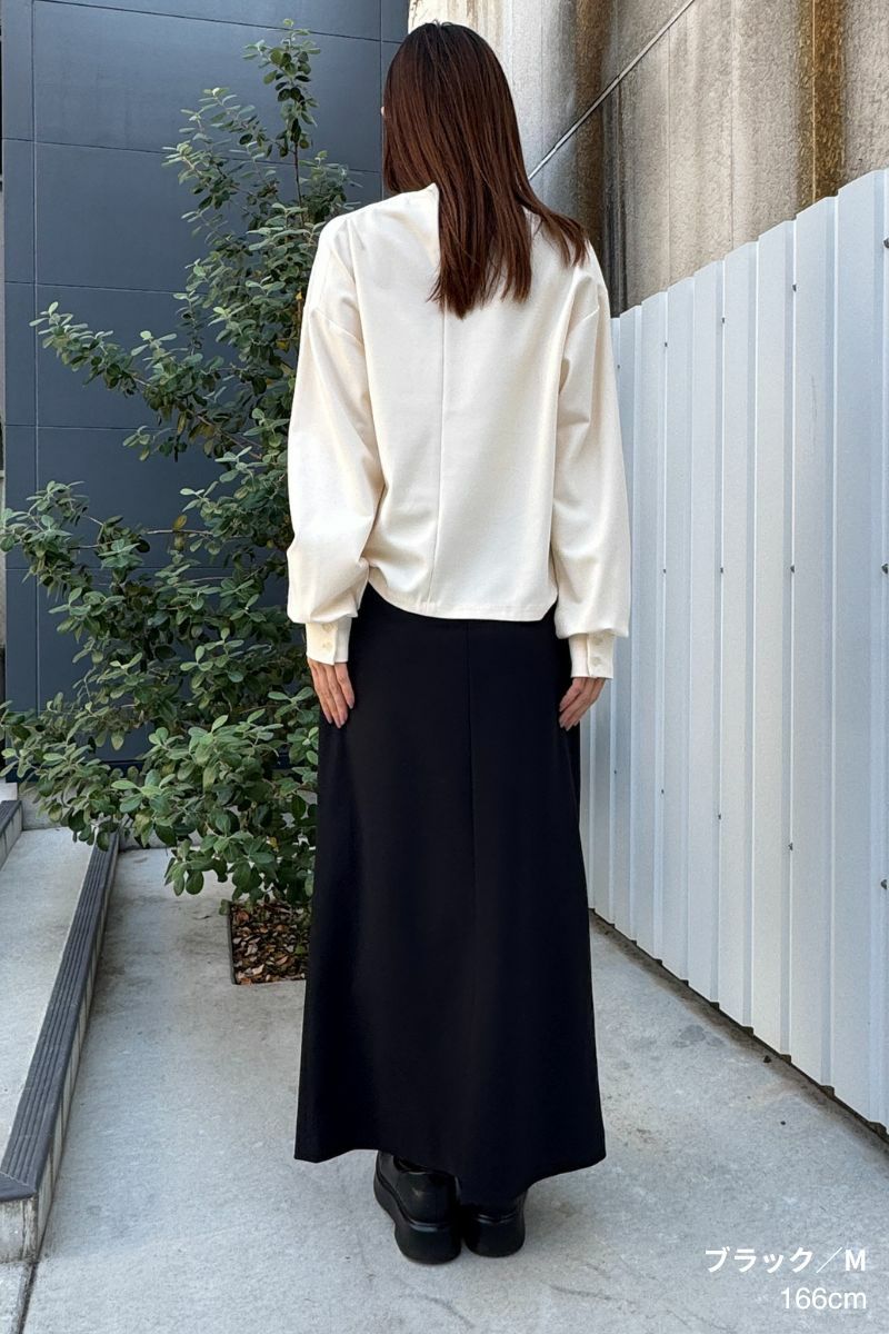 すっきりと伸びた縦のシルエットが、脚のラインをまっすぐ見せ、全体のバランスを美しく整えてくれます。