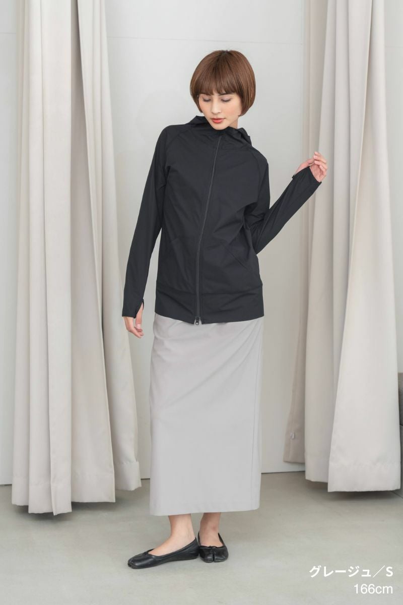 控えめな光沢がほんのり上品さを添え、カジュアルにもなりすぎません。しなやかに見せながらも、抜群の着心地を体感できます。 なんといっても、機能性の多さ。 ストレッチ性や速乾性はもちろん、UVカット、透け防止など、必要な機能はすべて揃っています。