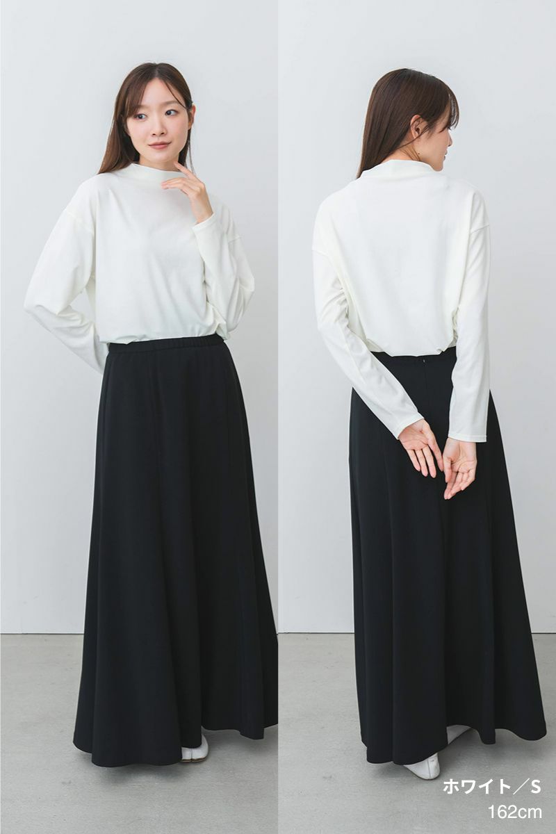 気になるラインをカバーしながら、自然にスタイルアップが叶うあったかトップスを作りました。ゆったりとしたシルエットでもだらしなく見えない上品な設計で、首もとはボトルネックになっているため、大人らしい落ち着きもプラス。