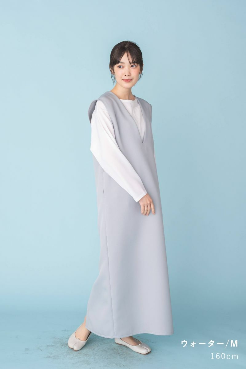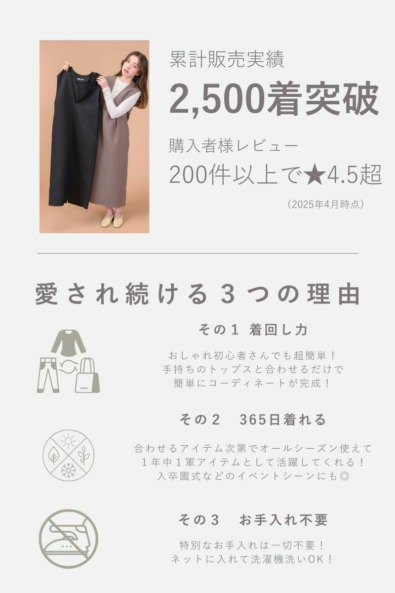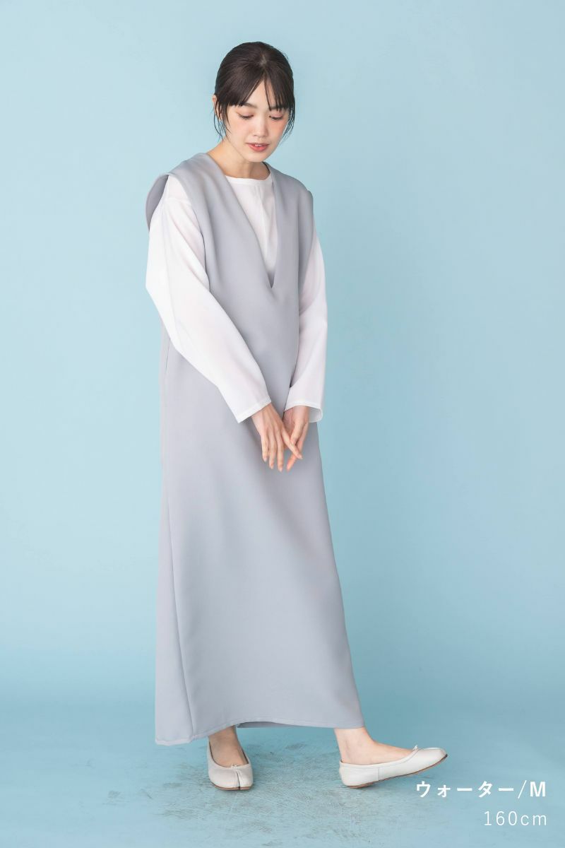 ウォーター 画像拡大 【新品・未使用】 【Reuse】オールシーズンVネックワンピース 一般価格 ¥ 18,955 のところ 限定価格 ¥ 14,850 税込 販売を終了しました。 申し訳ございません。ただいま在庫がございません。 通常販売商品との同時購入はできません。 (必須) 了承した。(了承ボタンにチェックを入れてからカートへ入れてください。) カートに追加 サイズ 色 M ウォーター 在庫切れ お気に入りに登録する — 閉じる 購入をご検討中の方へご案内 商品ポイント サイズ・素材・レビュー 動きやすさと、美シルエットを兼ね備えた、アナタの新たな必須アイテム オールシーズンVネックオールインワンと同生地を使用したワンピース。胸元はVネック仕様でスッキリとした印象に。気膨れしにくいデザインを採用したことで、気候や気分に応じたインナーを選択でき、この一枚で多様なスタイリングを可能にしました。身幅は太すぎず細すぎない絶妙なラインを追求し、スッキリ細見えする美シルエットを実現。「歩くお洒落」の登場です。 アナタの人生の1シーンに選んでもらえる服に。 ご家族との大切な時間。ご親族様との久しぶりの再会。お子様の行事と、会社を行き来する忙しい日。オフの日に、大好きな友人と過ごすかけがえのない時間。少し背伸びをして、ドレスアップする特別な一日。アナタの人生で様々なシーンを超え、流れる季節に合わせて365日着用できます。逢いたい人にふと逢いに行ける時、その瞬間全てに寄り添い、ともに時を刻む相棒のような衣類になることを願っています。 自宅の洗濯機でノンストレスケア 365日、どんな季節でも気軽に着用いただきたいため、ご自宅の洗濯機で洗濯が可能なイージーケア生地を使用しています。ネットに入れてお洗濯してください。※洗濯ネットは畳んでピッタリサイズのものにお入れください。過度の摩擦やネット無しのお洗濯は生地表面のほつれや毛玉につながりますのでご注意ください。 お客様の声を元に、SML展開に 累計2,500着以上の販売実績をもつオールシーズンVネックワンピースですが、多くのお客様から「Lサイズを作ってほしい」というお声をいただいていました。Lサイズでも綺麗なシルエットになるよう、何度もサイジングの調節を行い、ようやく納得のいく形が完成いたしました。より多くの方々に、Vネックワンピースを永くご愛用いただく機会になれば幸いです。 あなたの人生のシーン全てに寄り添える相棒のようなワンピース。お子さまの学校行事やご友人とのカフェで過ごすひと時、パートナーとの特別なディナー、どんなシーンでもこれさえあれば心配ナシ!そんな心強いワンピースです。 size サイズ詳細 サイズ表の見方 > サイズ(cm) 着丈 身幅 S 119 49 M 124 50 L 125 52 素材 素材 ポリエステル100%生地の厚み:中厚透け感:なしシワ:なりにくい伸縮性:なし光沢感:ややあり 動きやすさと、美シルエットを兼ね備えた、アナタの新たな必須アイテム オールシーズンVネックオールインワンと同生地を使用したワンピース。胸元はVネック仕様でスッキリとした印象に。気膨れしにくいデザインを採用したことで、気候や気分に応じたインナーを選択でき、この一枚で多様なスタイリングを可能にしました。身幅は太すぎず細すぎない絶妙なラインを追求し、スッキリ細見えする美シルエットを実現。「歩くお洒落」の登場です。 アナタの人生の1シーンに選んでもらえる服に。 ご家族との大切な時間。ご親族様との久しぶりの再会。お子様の行事と、会社を行き来する忙しい日。オフの日に、大好きな友人と過ごすかけがえのない時間。少し背伸びをして、ドレスアップする特別な一日。アナタの人生で様々なシーンを超え、流れる季節に合わせて365日着用できます。逢いたい人にふと逢いに行ける時、その瞬間全てに寄り添い、ともに時を刻む相棒のような衣類になることを願っています。 自宅の洗濯機でノンストレスケア 365日、どんな季節でも気軽に着用いただきたいため、ご自宅の洗濯機で洗濯が可能なイージーケア生地を使用しています。ネットに入れてお洗濯してください。※洗濯ネットは畳んでピッタリサイズのものにお入れください。過度の摩擦やネット無しのお洗濯は生地表面のほつれや毛玉につながりますのでご注意ください。 お客様の声を元に、SML展開に 累計2,500着以上の販売実績をもつオールシーズンVネックワンピースですが、多くのお客様から「Lサイズを作ってほしい」というお声をいただいていました。Lサイズでも綺麗なシルエットになるよう、何度もサイジングの調節を行い、ようやく納得のいく形が完成いたしました。より多くの方々に、Vネックワンピースを永くご愛用いただく機会になれば幸いです。 オールシーズン 洗濯可能 透け防止 国内縫製 国産生地 環境負担軽減 Detail 大きく開いたVネックでスッキリとした印象に。 気になる腰回りを拾わない、裾までストンと一直線に落ちるこだわりの美シルエット。 大きめに設