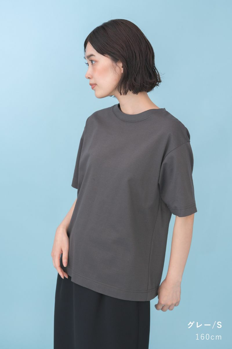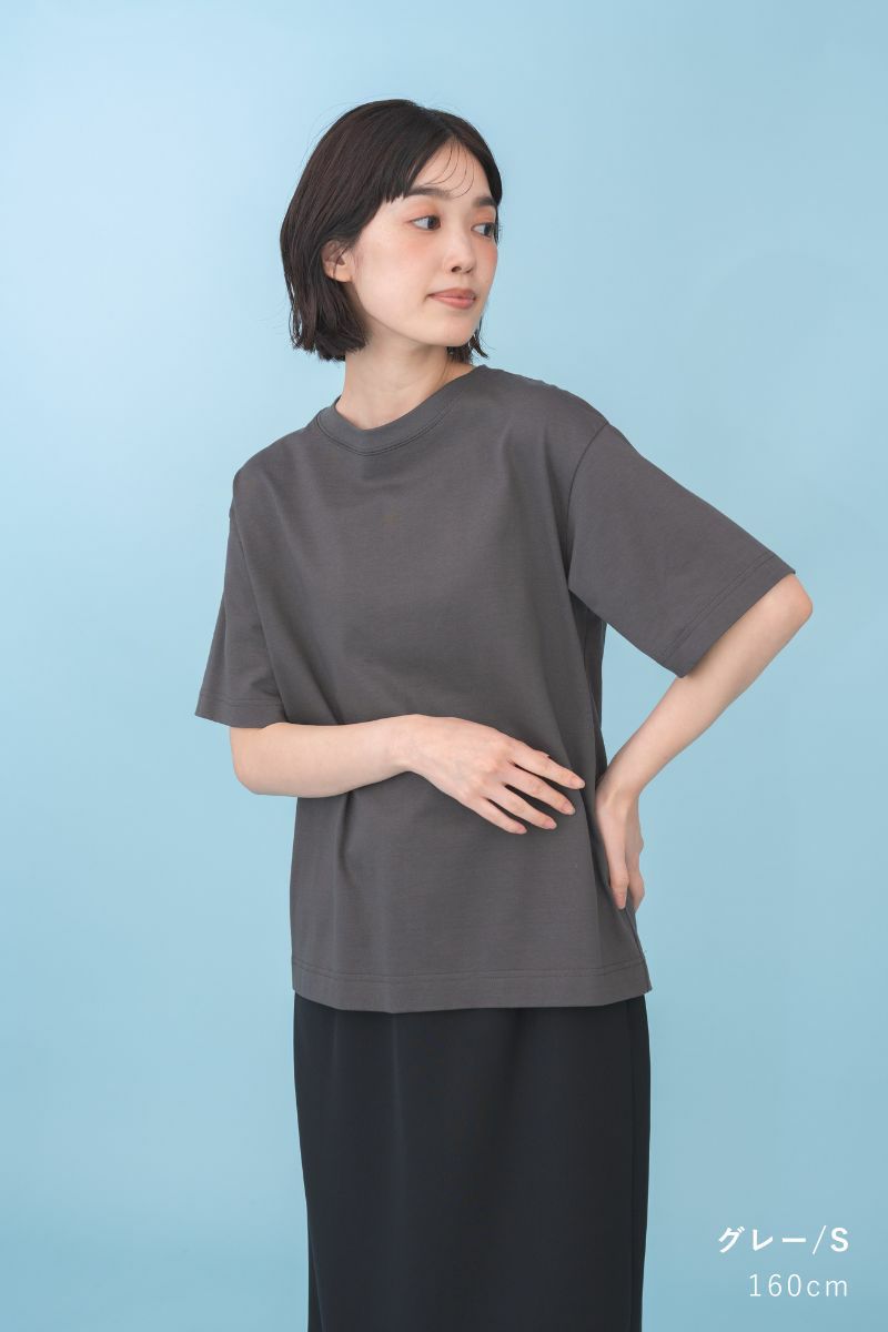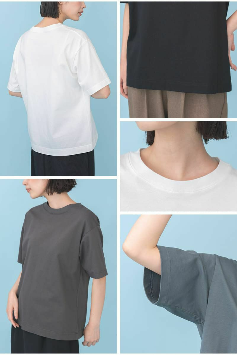 洗練された大人の女性にふさわしい、選び抜かれたオーガニックコットンを採用したこのTシャツは、滑らかな着心地とともに、洗濯や着用を繰り返してもその形を崩さない、やや厚みのある質感が魅力です。