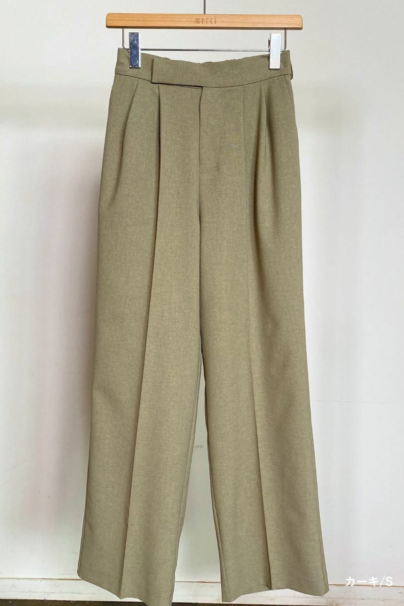 プレミアムカラースラックスをMサイズ着用しているので