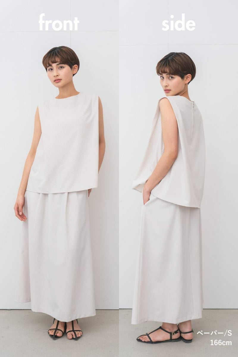 脇口が広くなくでも腕は窮屈さはなく、涼しく着れるノースリーブ。