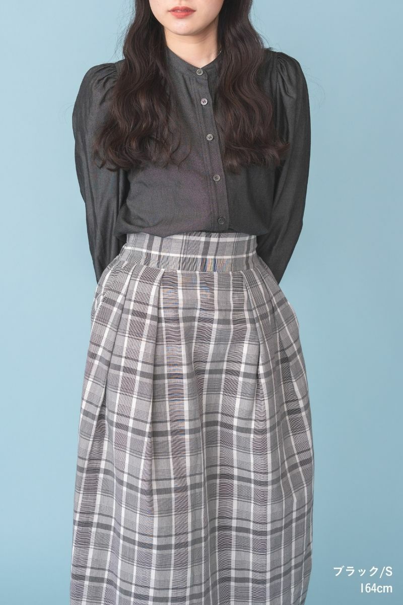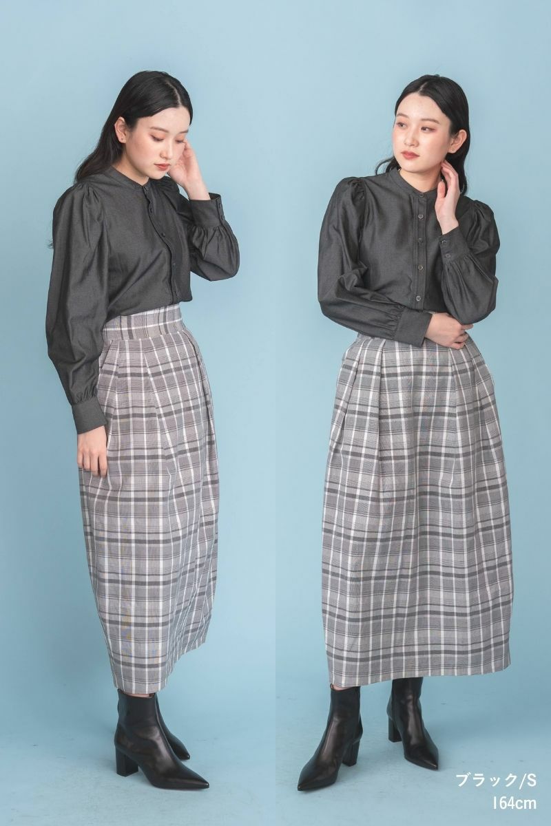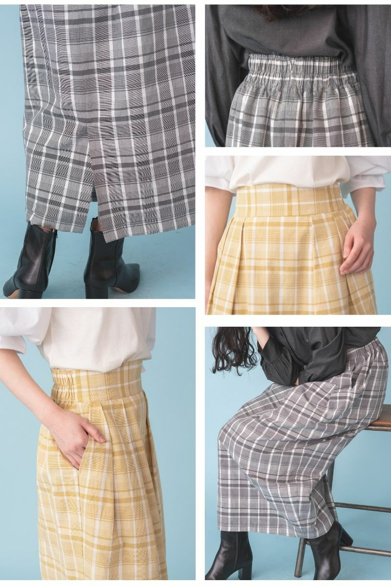 シンプルなカットソーやカーディガン、足元はブーツやサンダルなどと合わせて、大人のチェックスカートを存分に楽しんでいただけると嬉しいです。