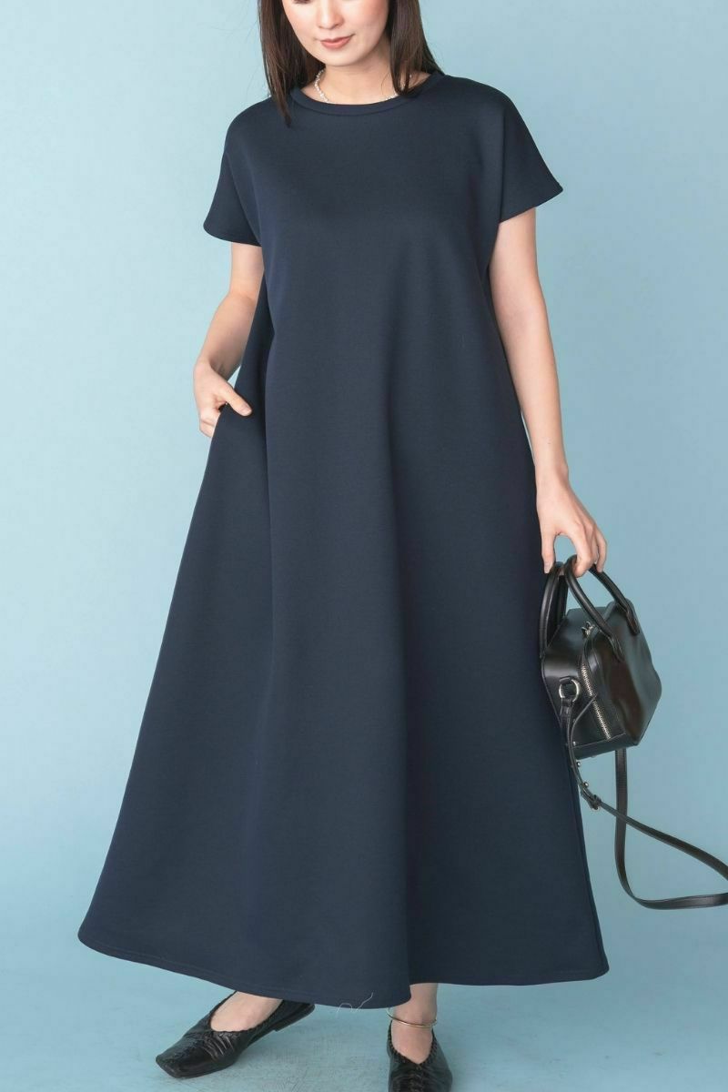 【洗濯可能/伸び縮み/シワになりにくい/送料無料】 オールシーズンストレッチVネックワンピース